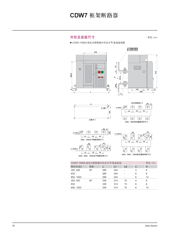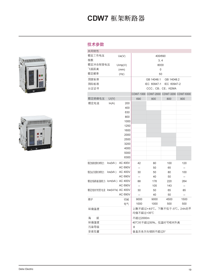 CDW7-2000 1000A 三极固定式AC380V无欠压,CDW7系列万能式断路器,DELIXI德力西