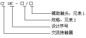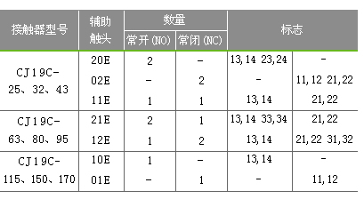 接触器型号辅助触头数量标志常开常闭CJ19C-25、32、43
